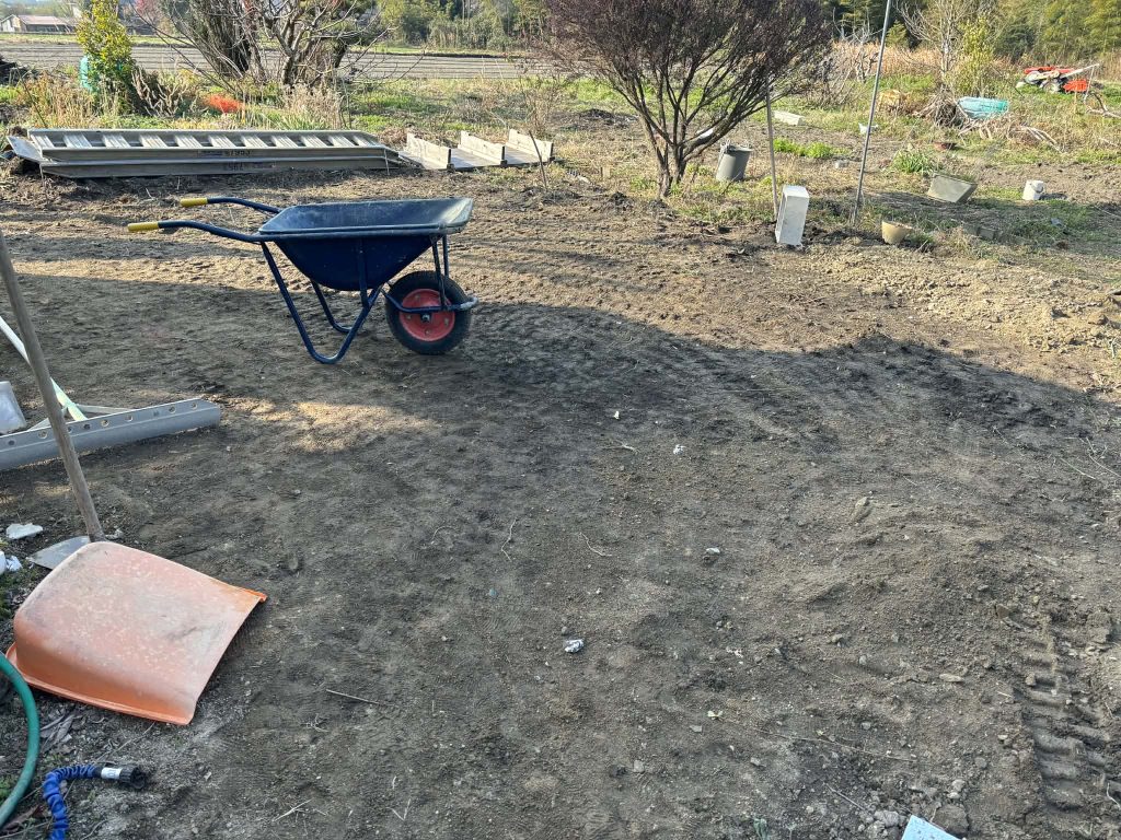 まずは安全に配慮しながら伐採作業を行い、その後、根まで取り除き井戸のポンプも移動、地面を整地し使いやすい状態へと仕上げています。